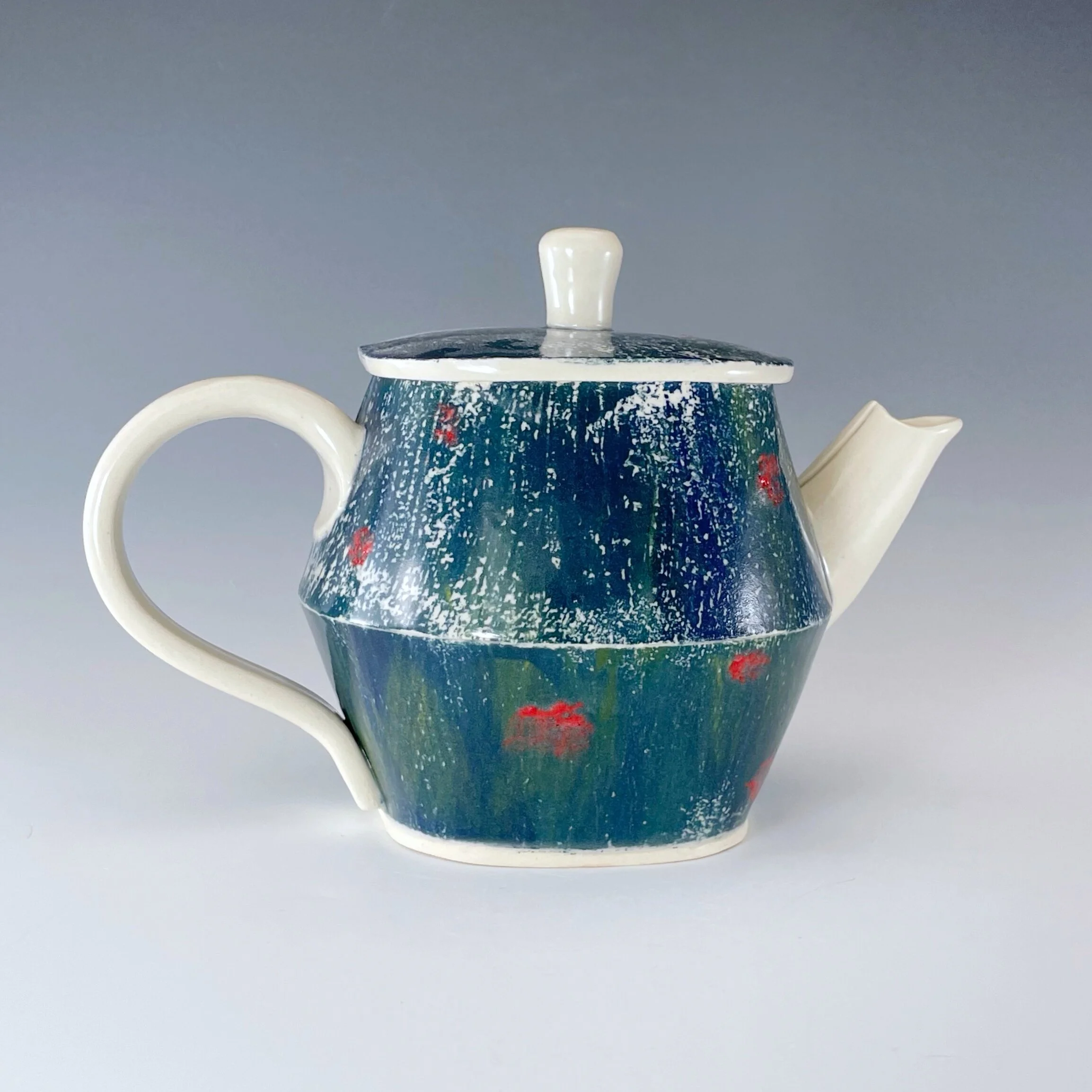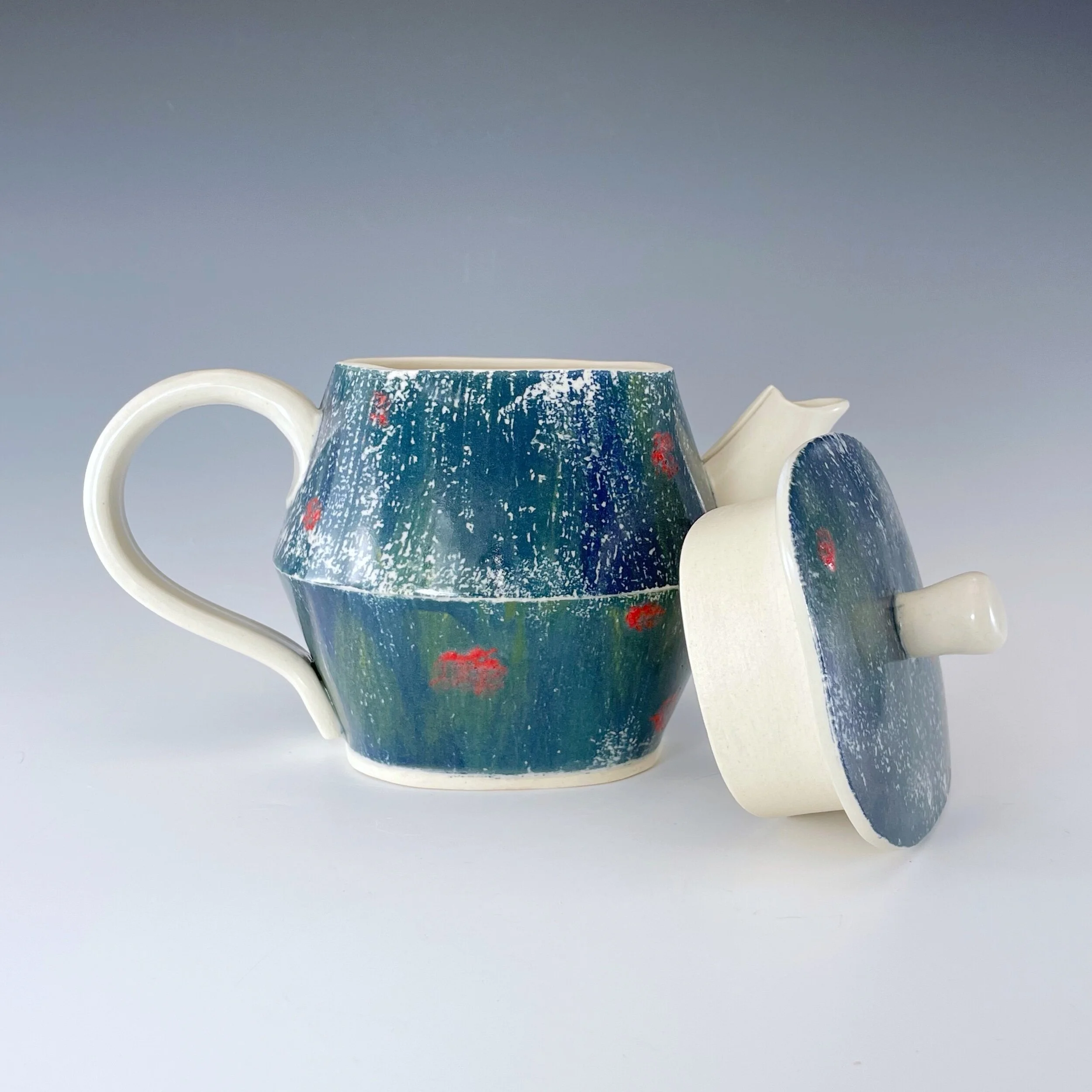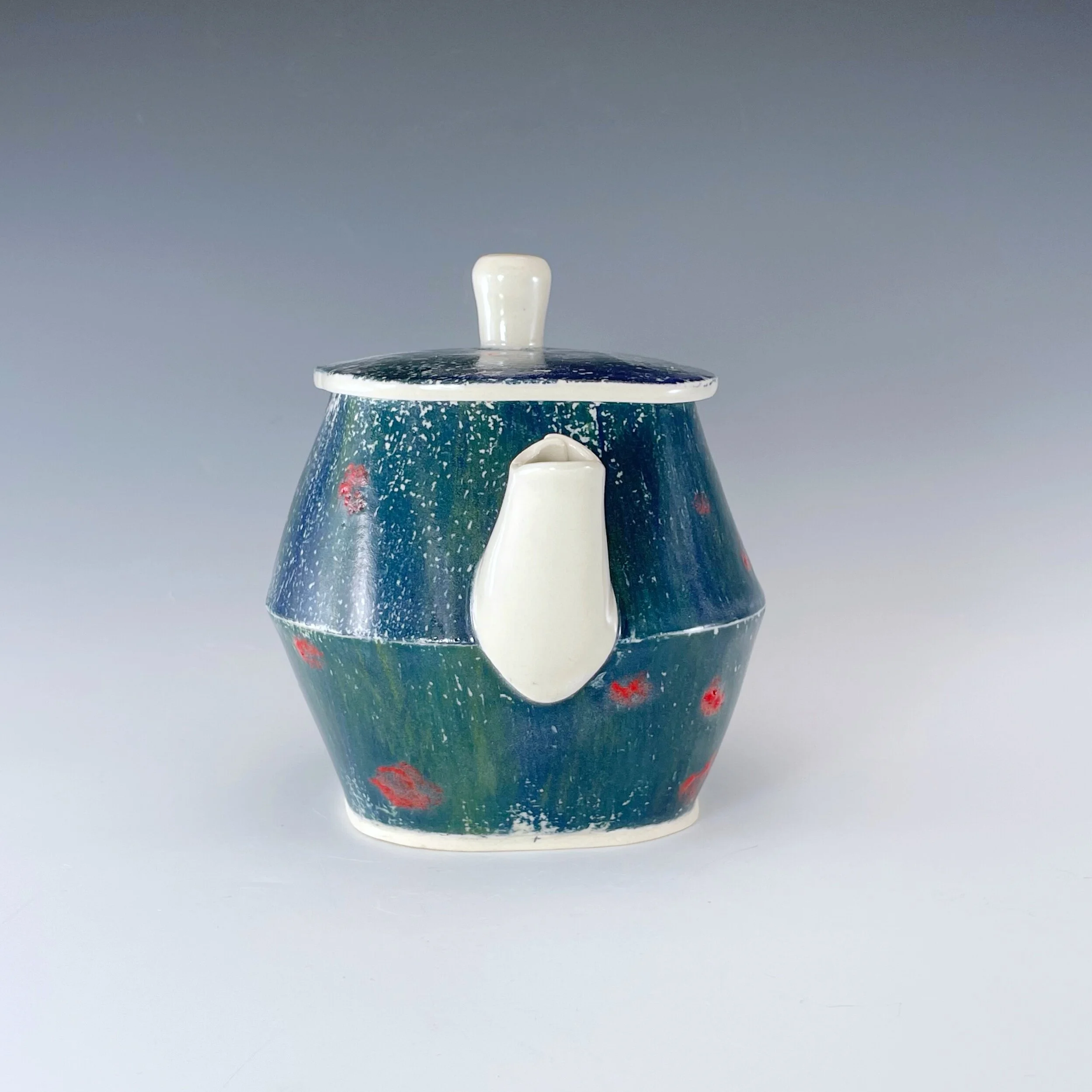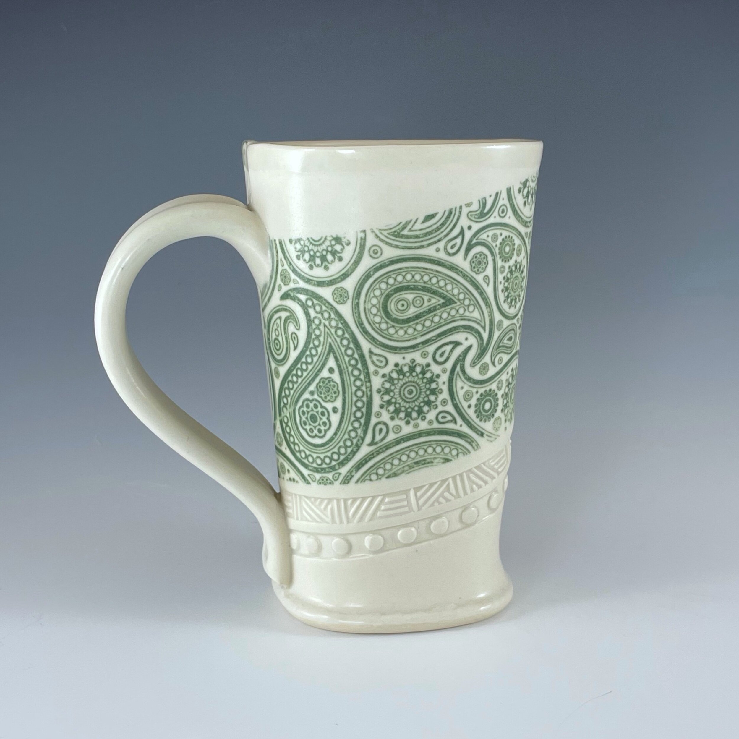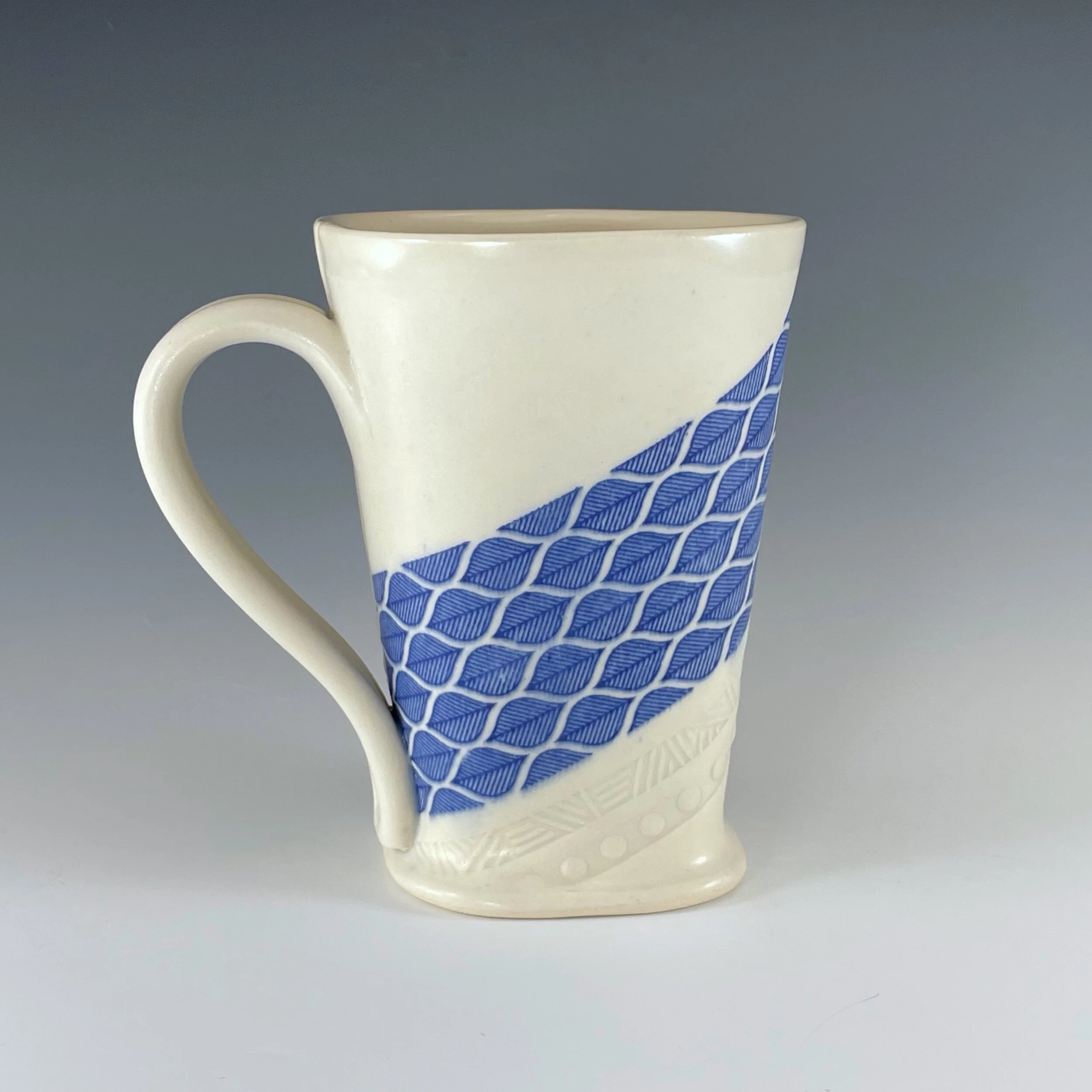 All my work is made from slabs and without a potter’s wheel. Look closely and you will be able to see the place where the seams come together. It is fired twice in an electric kiln, the second firing going up to 2200 degrees Fahrenheit. The clay and glazes are lead-free and food safe. All my work is made for use, not just to be displayed. It is durable, microwaveable, and dishwasher safe.
