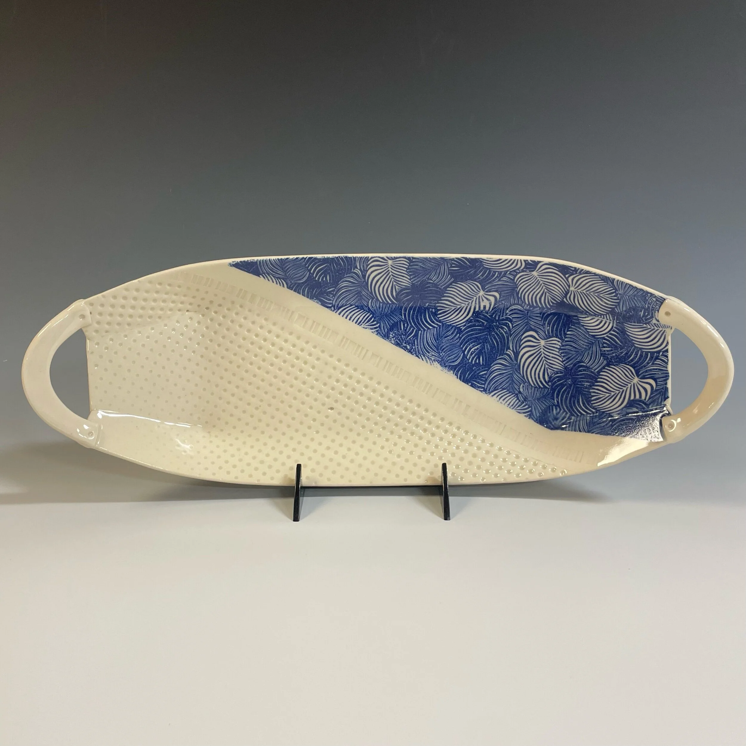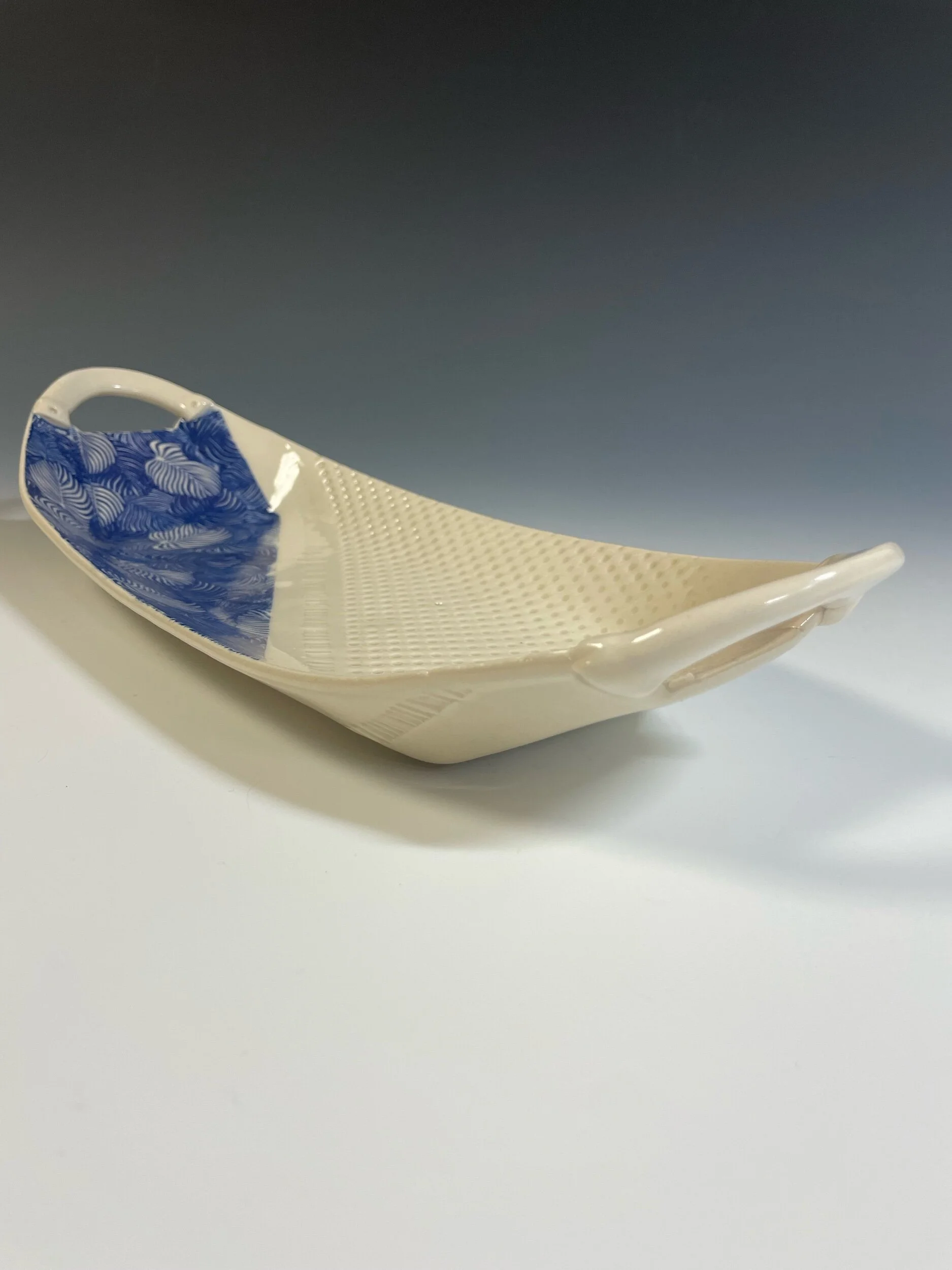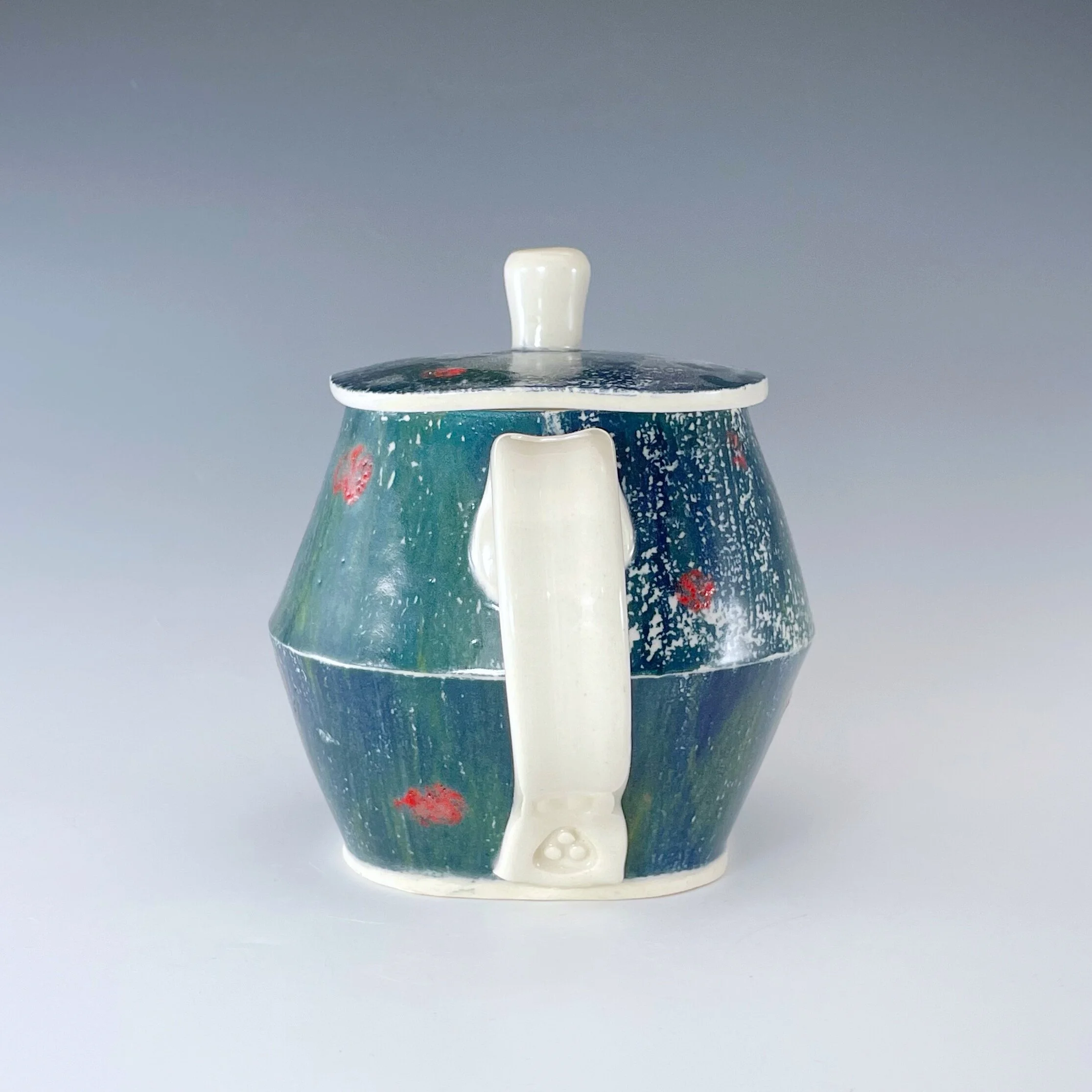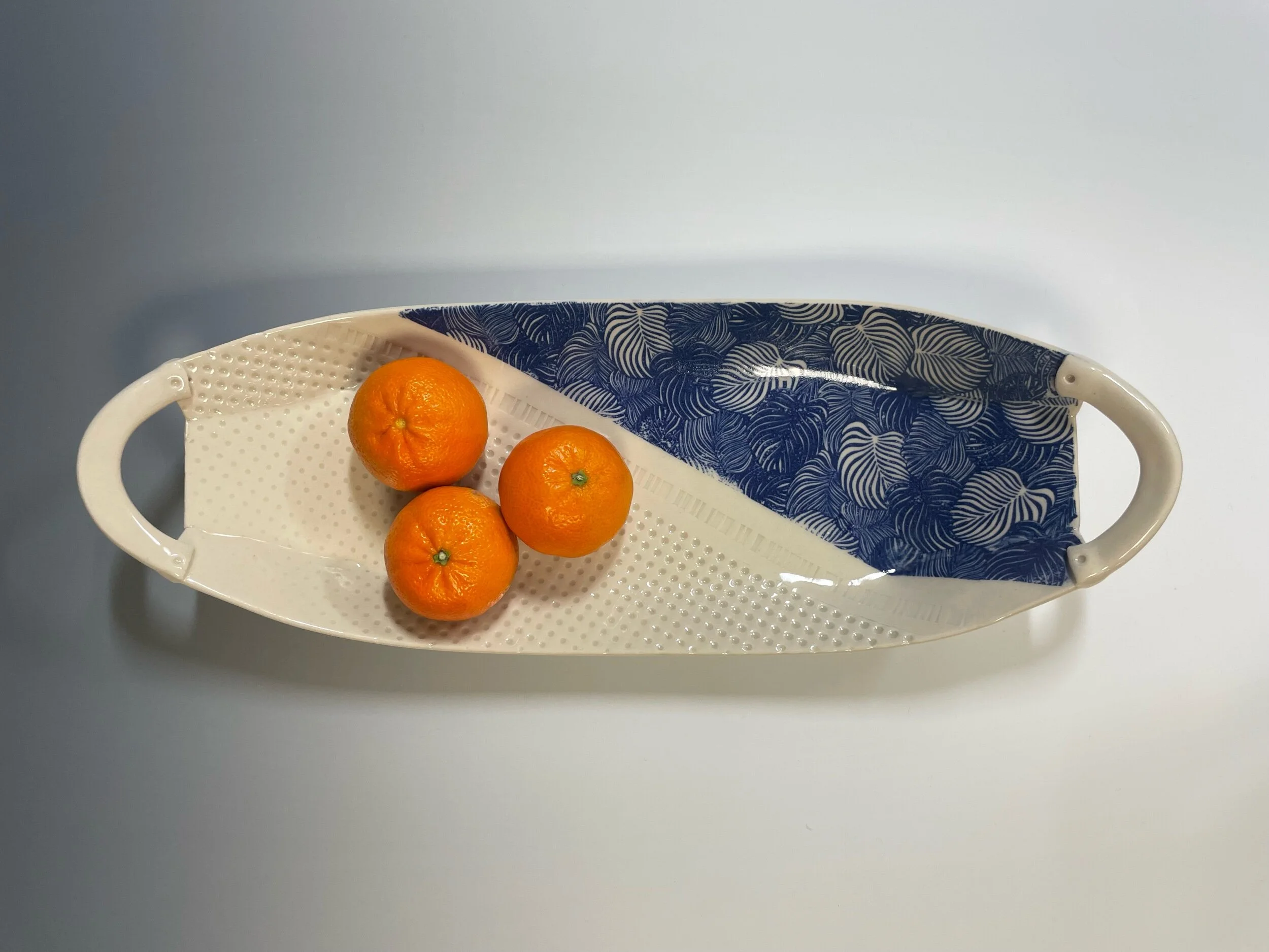 All my work is made from slabs and without a potter’s wheel. Look closely and you will be able to see the place where the seams come together. It is fired twice in an electric kiln, the second firing going up to 2200 degrees Fahrenheit. The clay and glazes are lead-free and food safe. All my work is made for use, not just to be displayed. It is durable, microwaveable, and dishwasher safe.