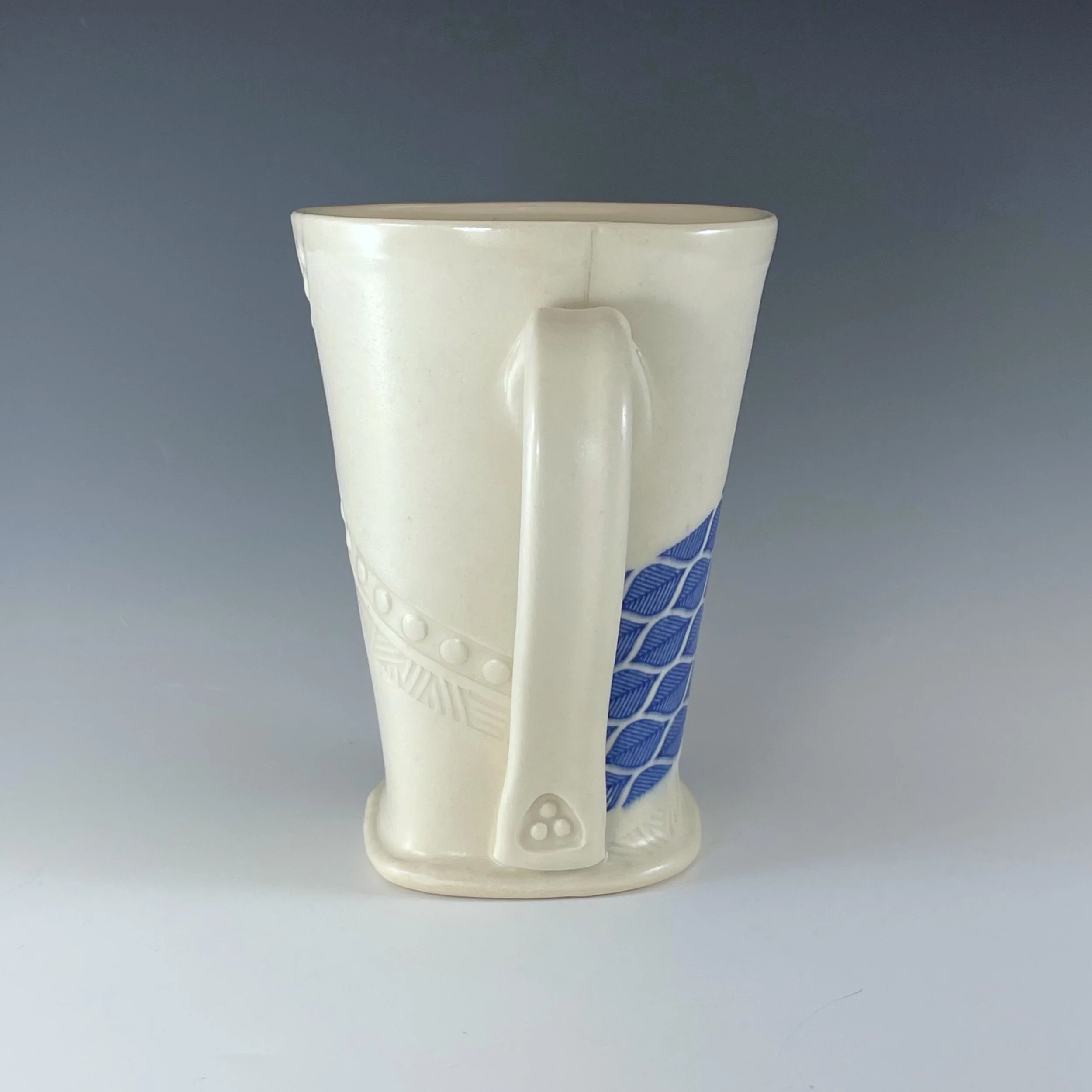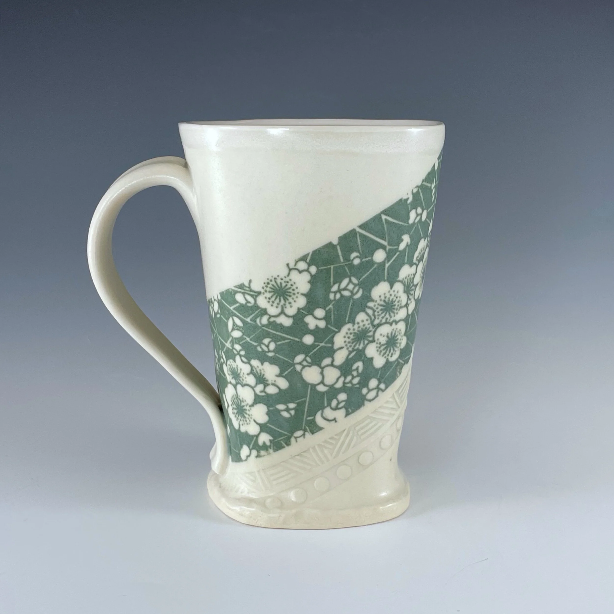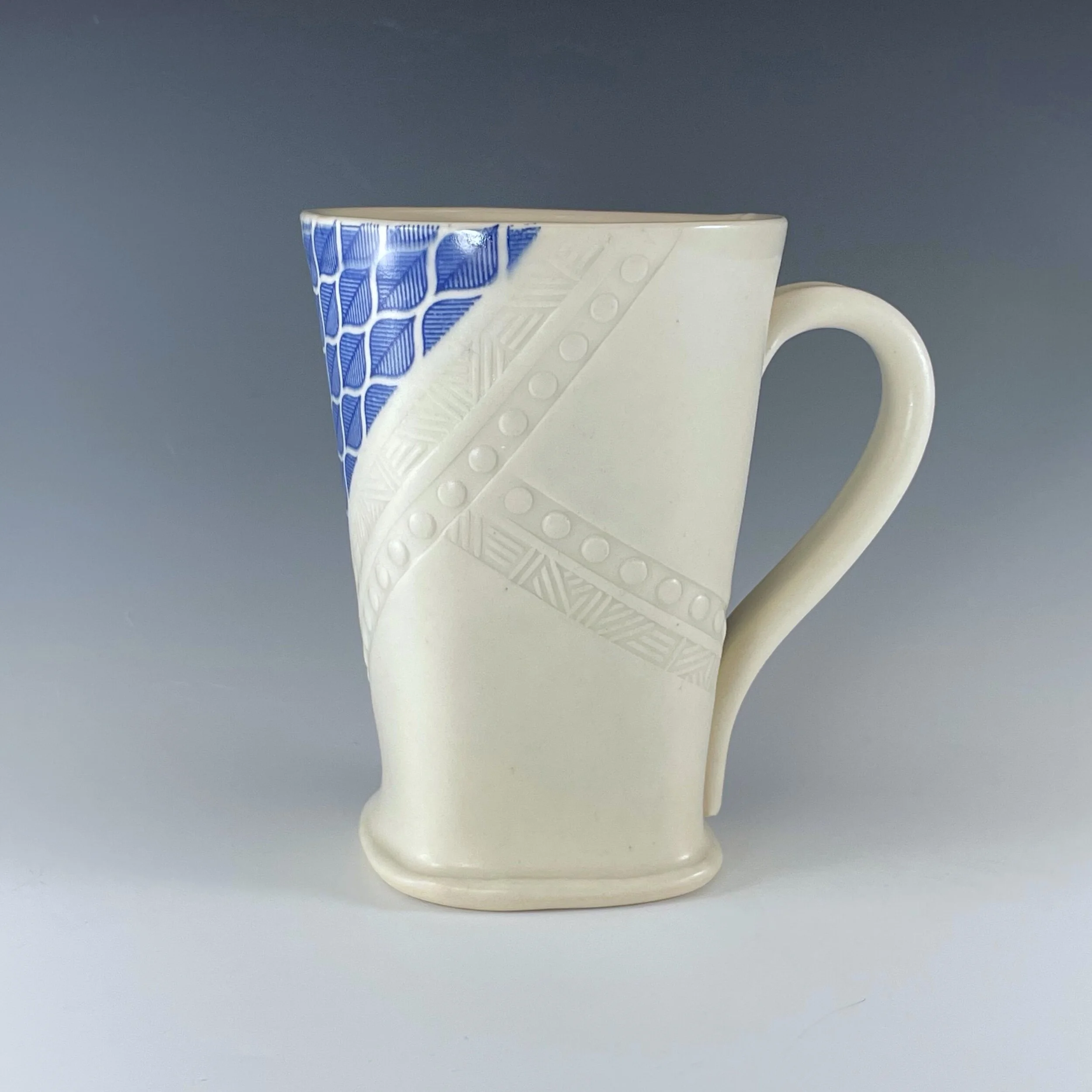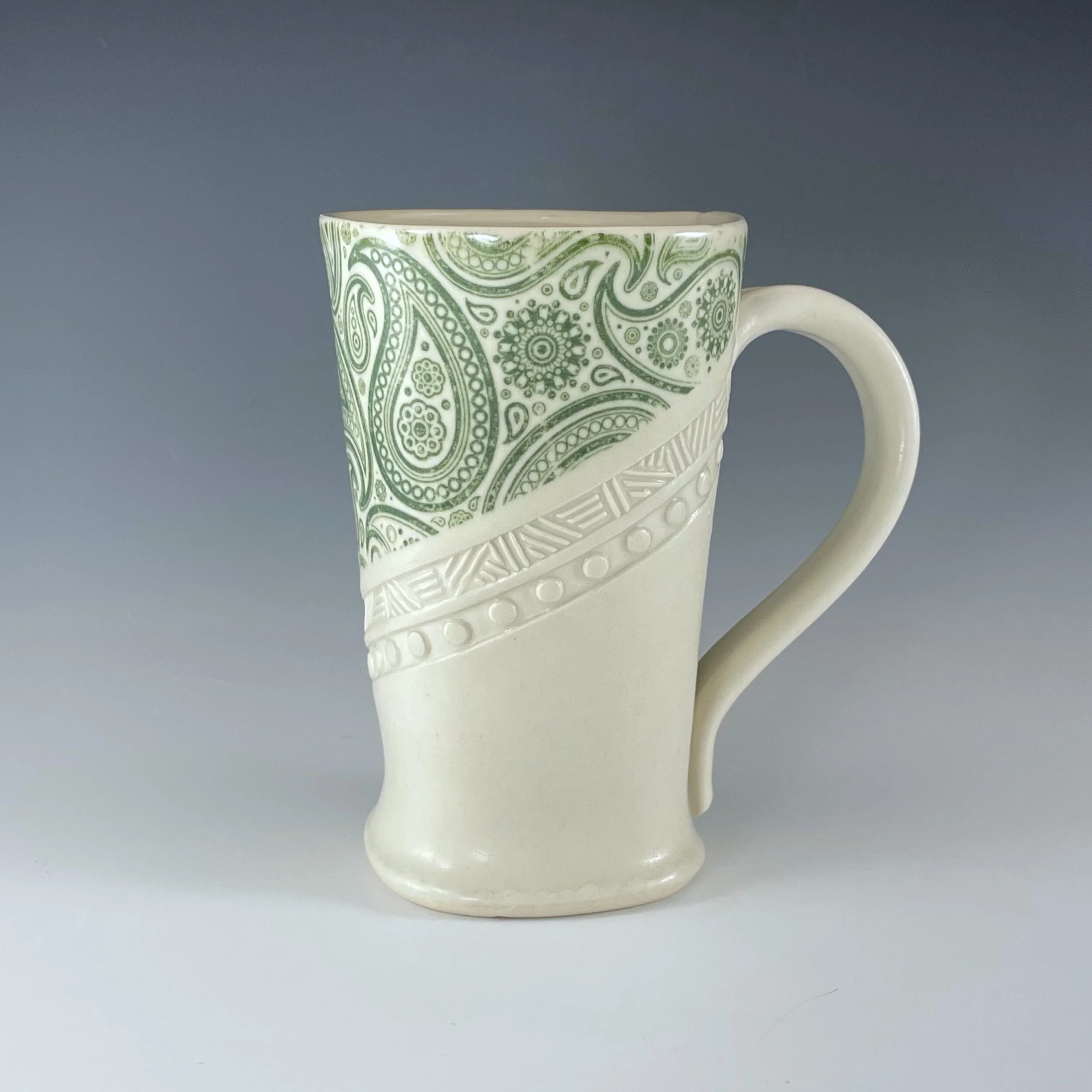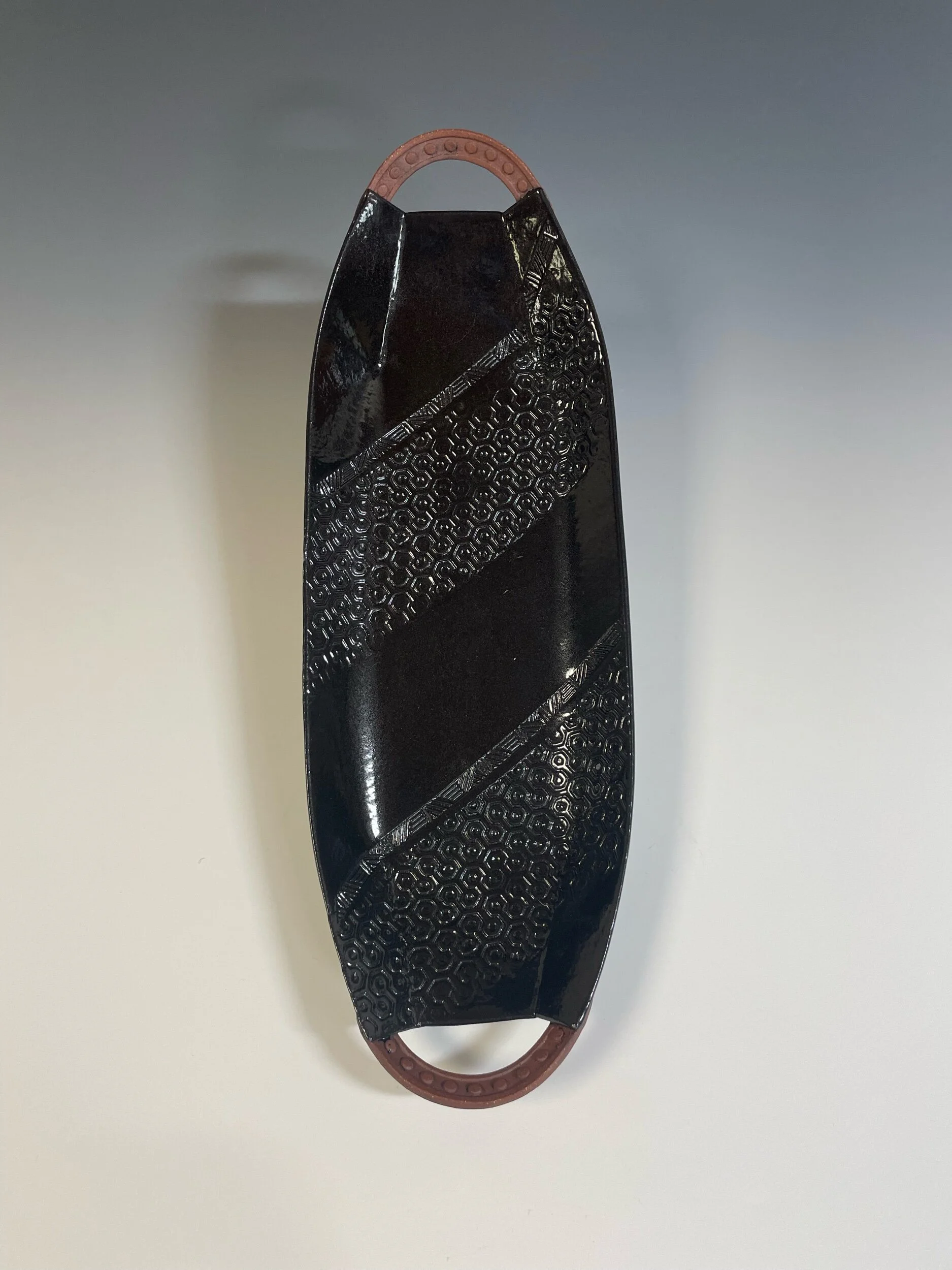 All my work is made from slabs and without a potter’s wheel. Look closely and you will be able to see the place where the seams come together. It is fired twice in an electric kiln, the second firing going up to 2200 degrees Fahrenheit. The clay and glazes are lead-free and food safe. All my work is made for use, not just to be displayed. It is durable, microwaveable, and dishwasher safe.