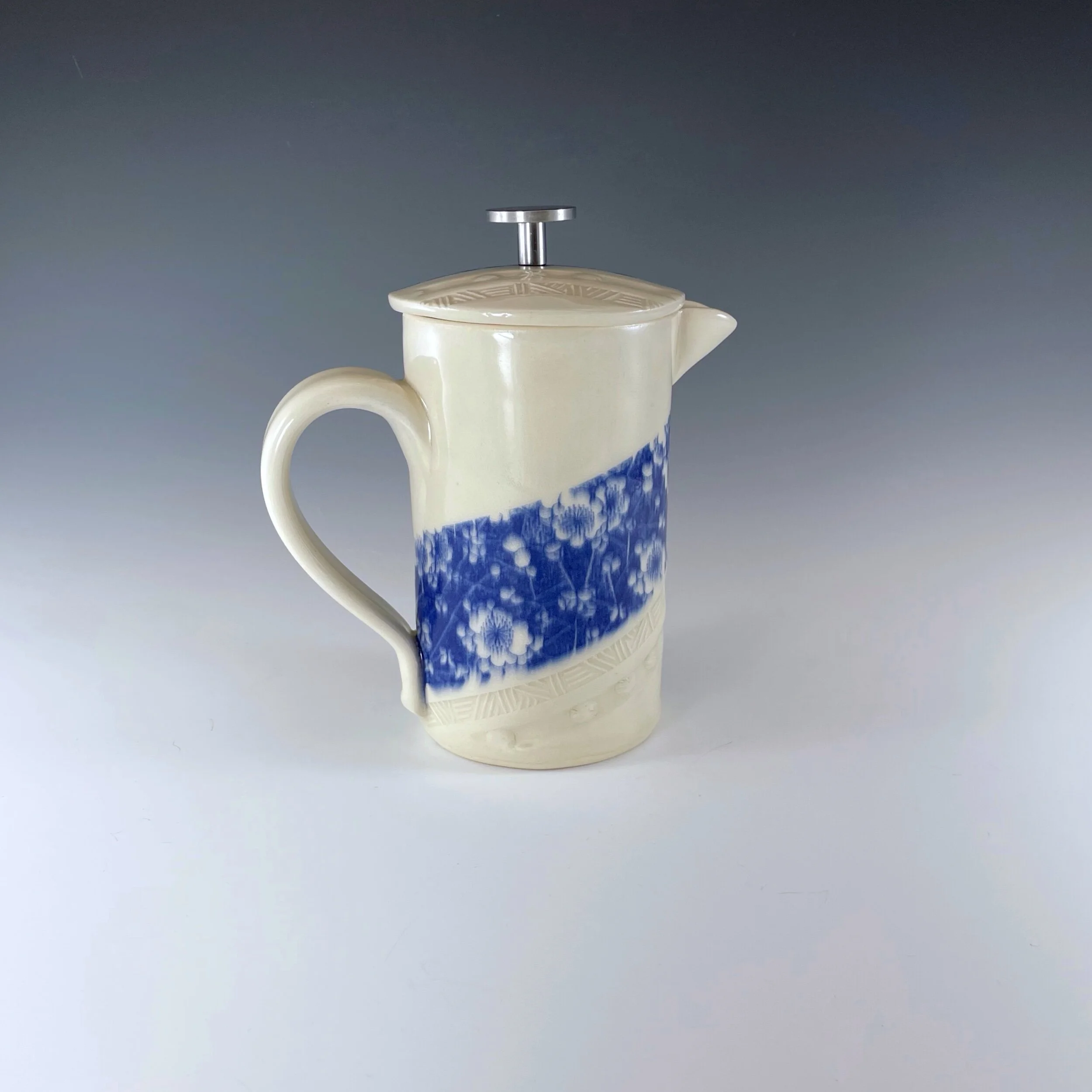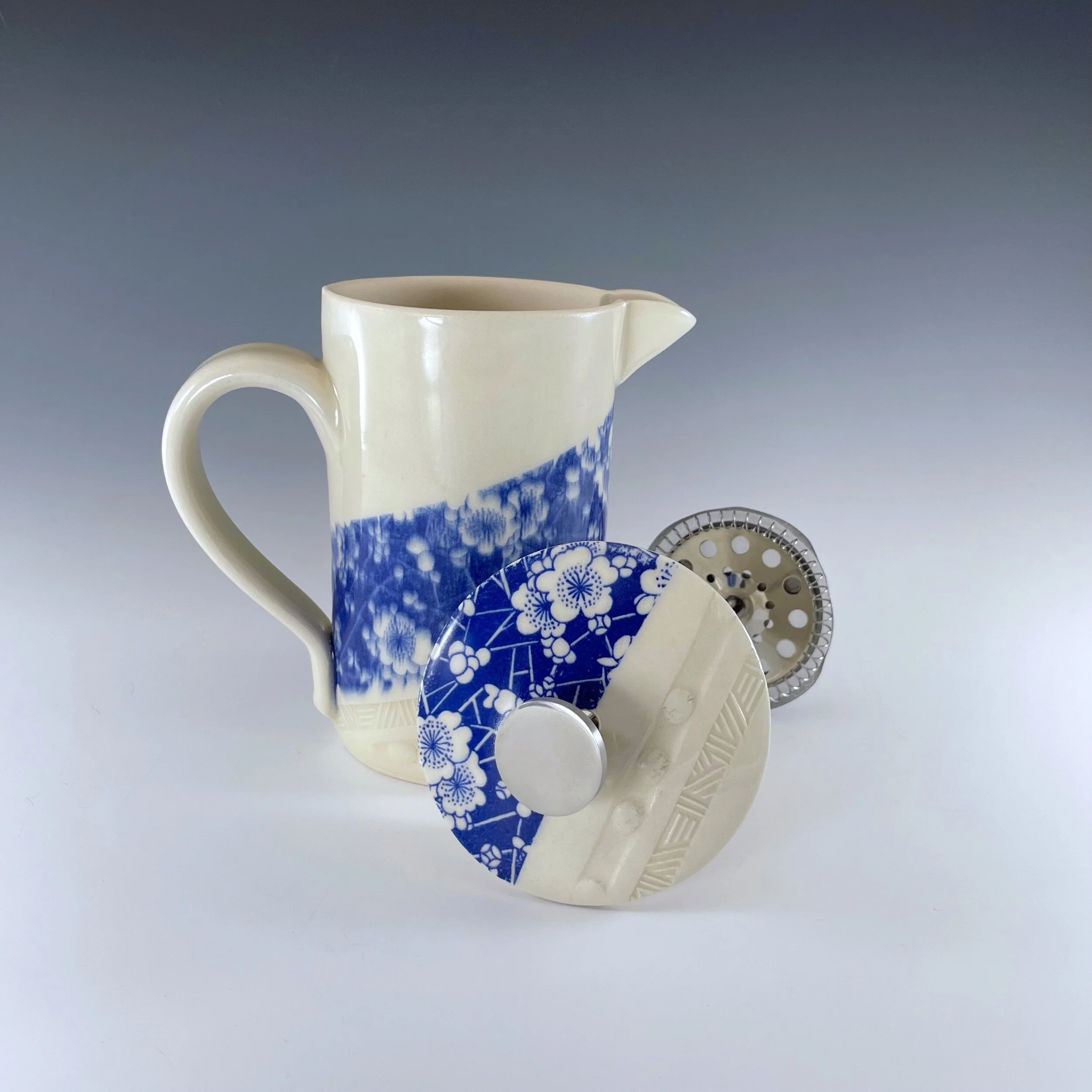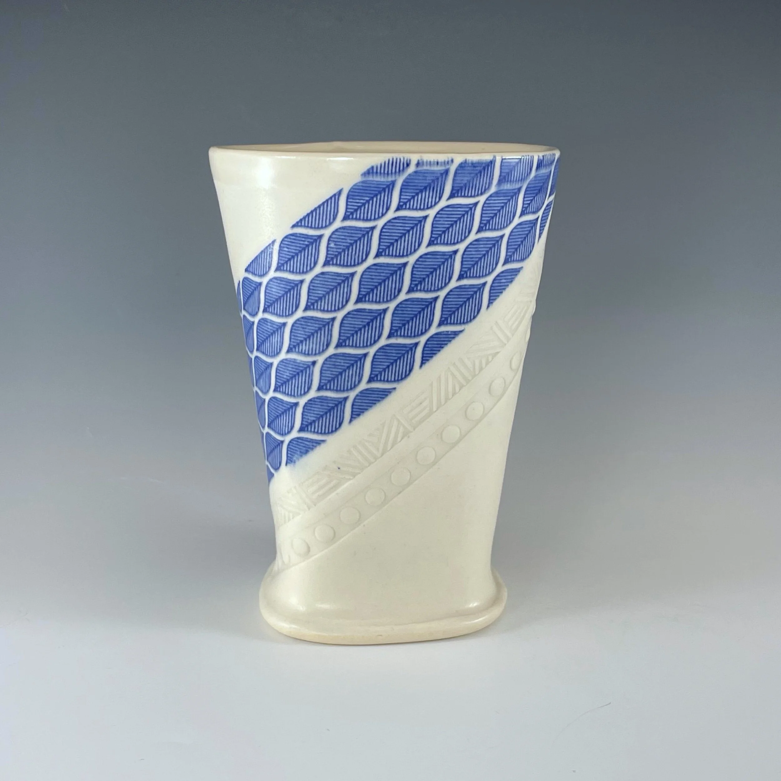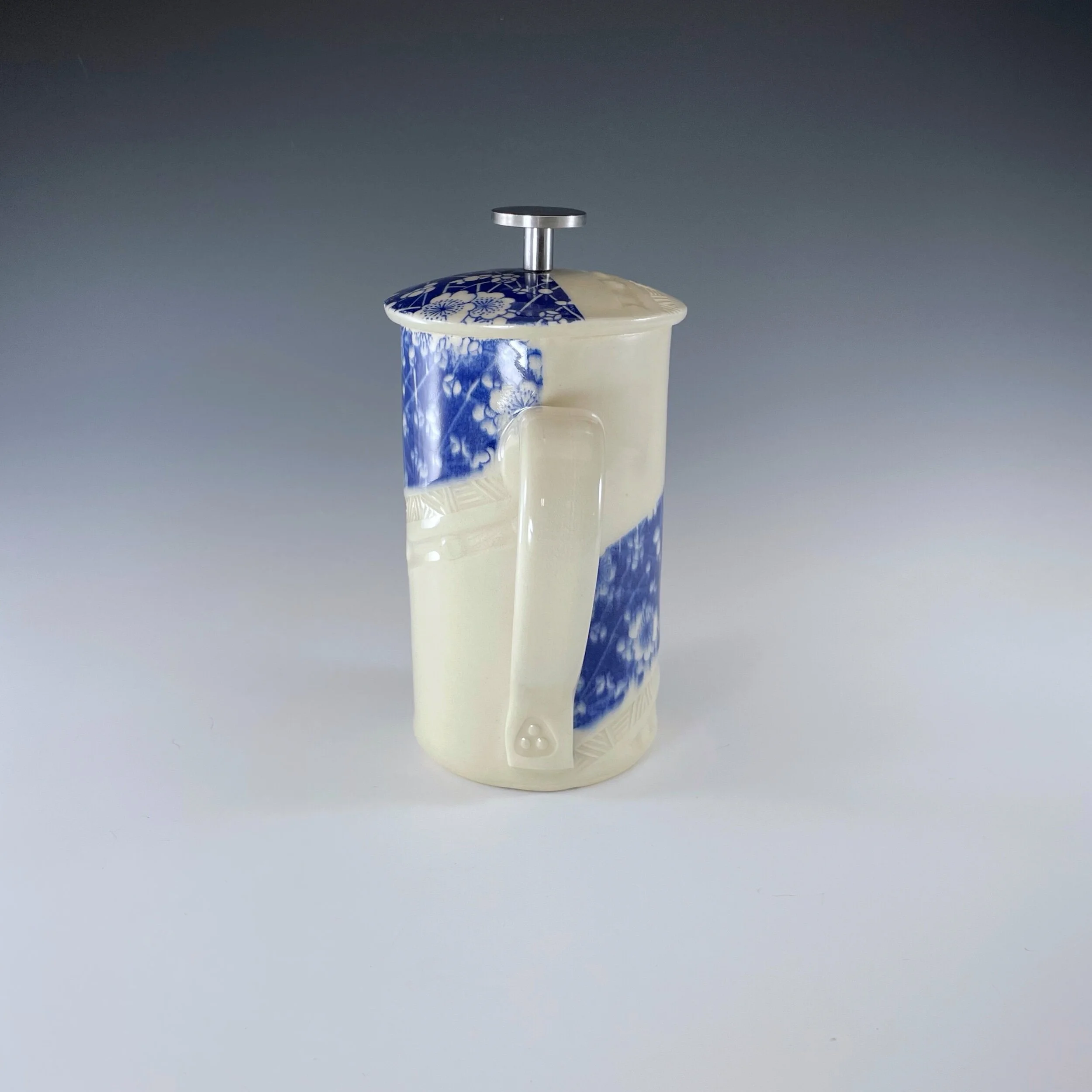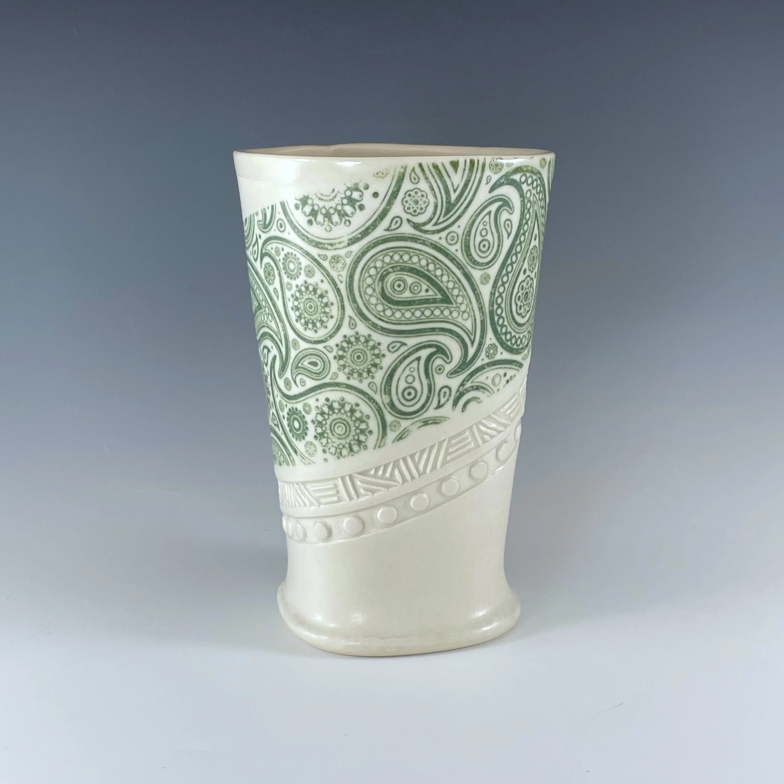 All my work is made from slabs and without a potter’s wheel. Look closely and you will be able to see the place where the seams come together. It is fired twice in an electric kiln, the second firing going up to 2200 degrees Fahrenheit. The clay and glazes are lead-free and food safe. All my work is made for use, not just to be displayed. It is durable, microwaveable, and dishwasher safe.