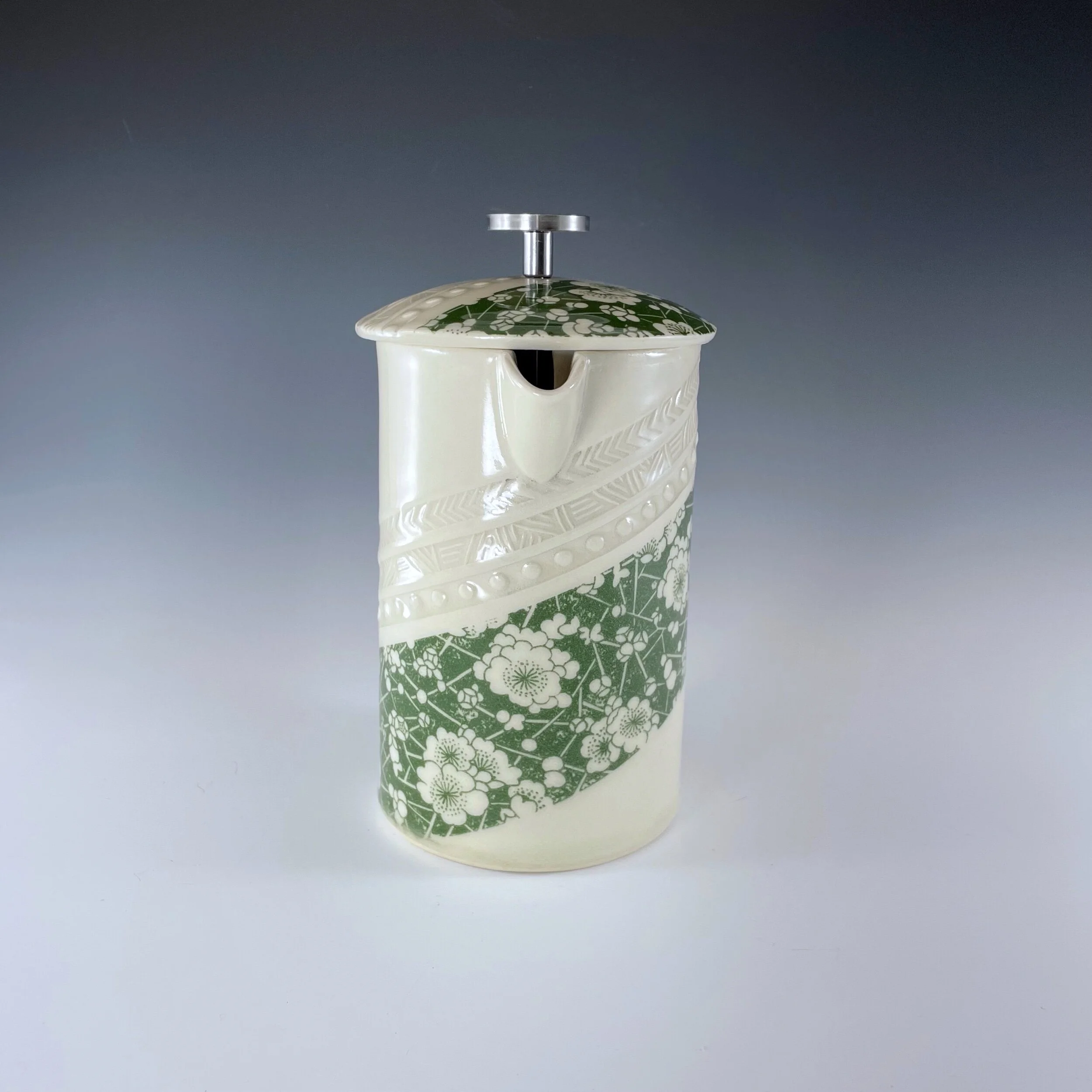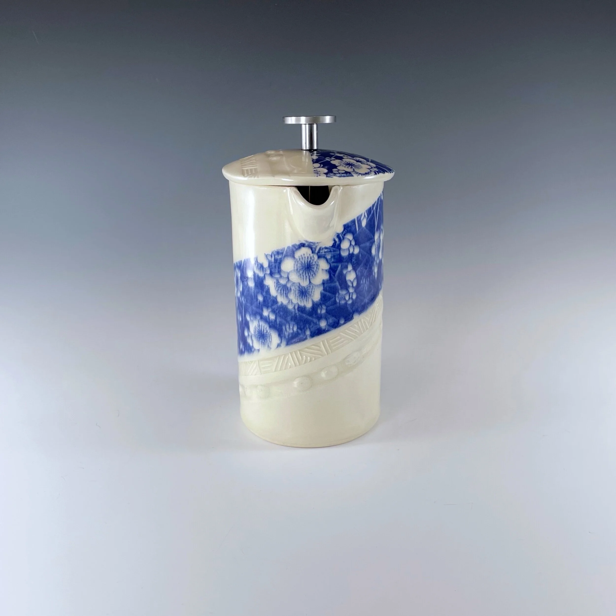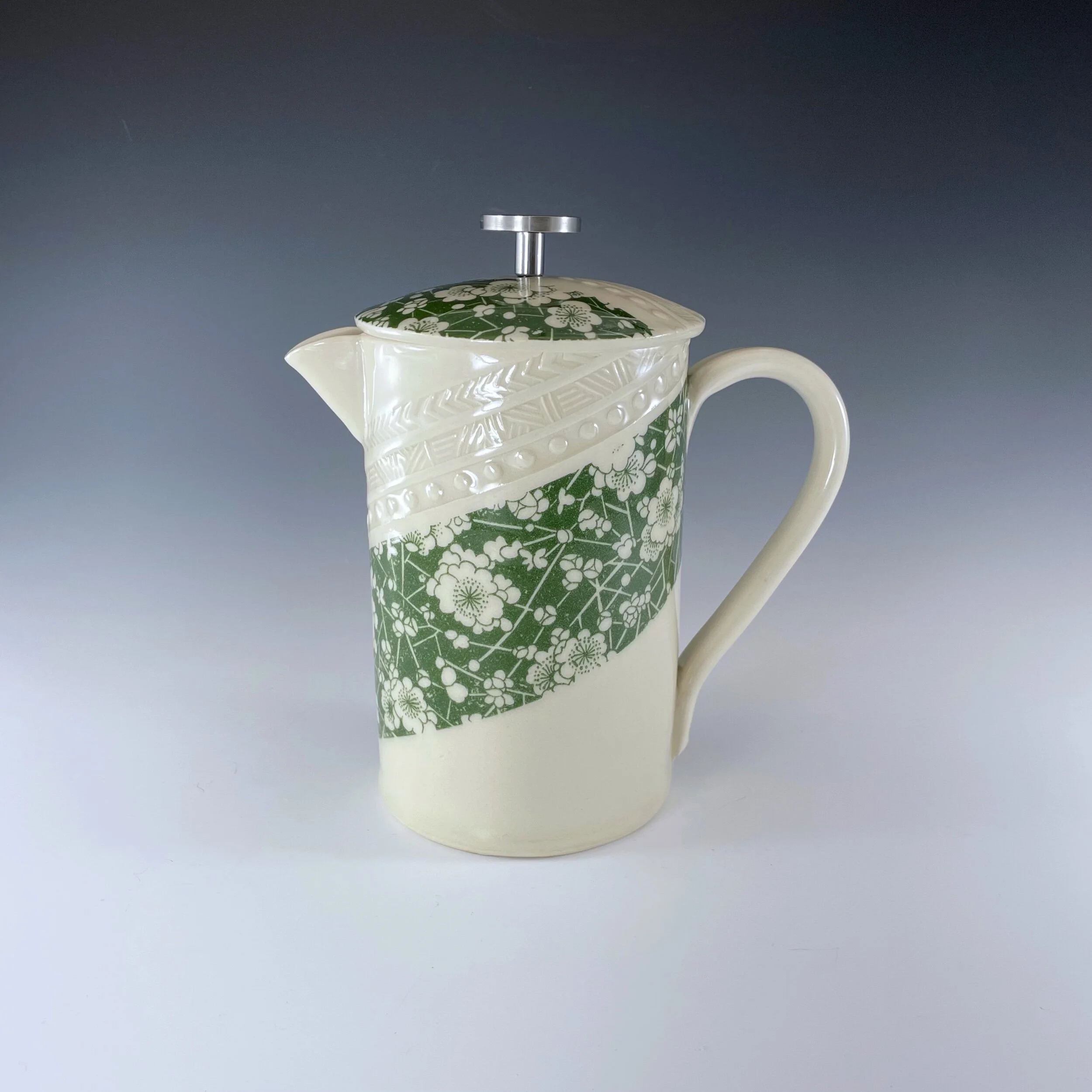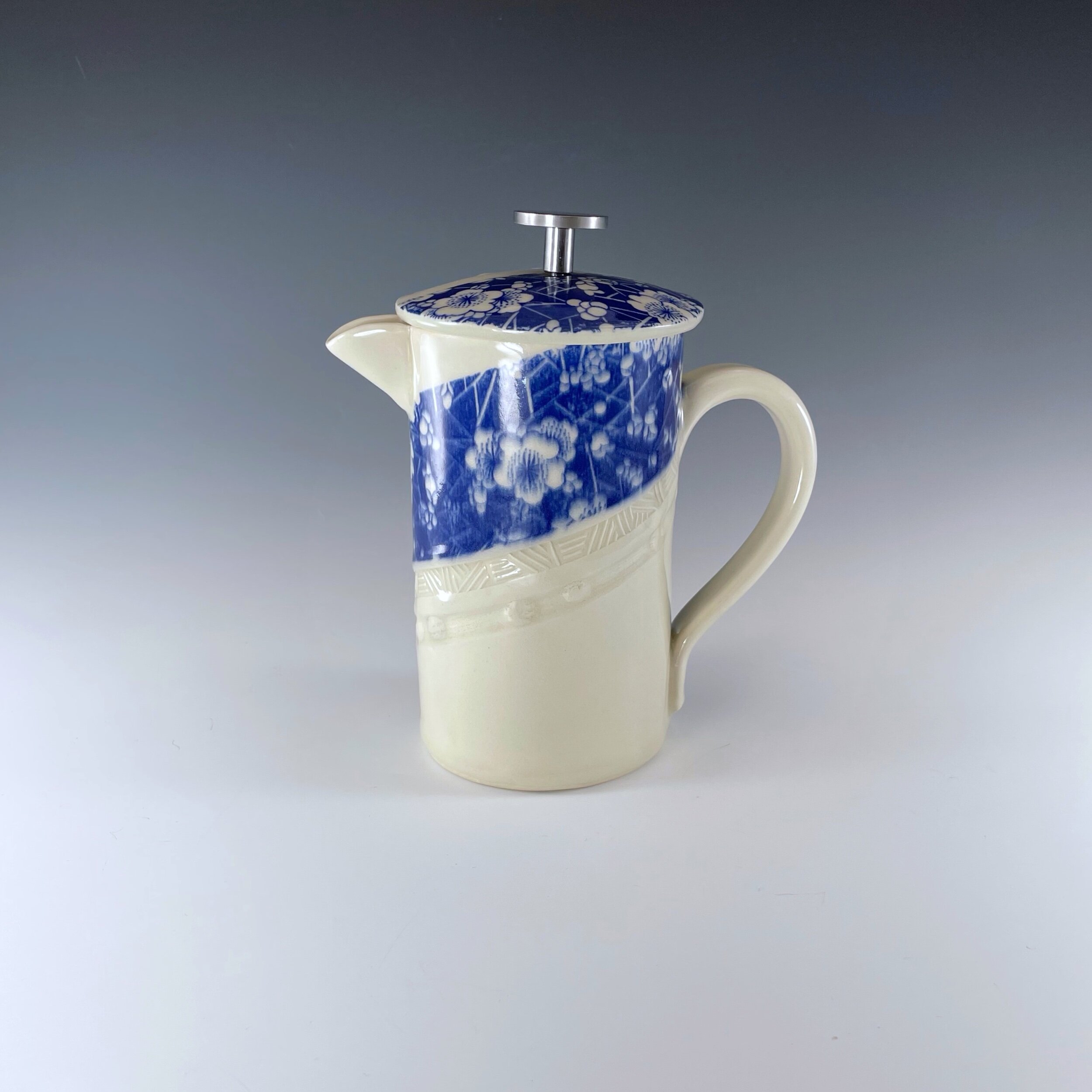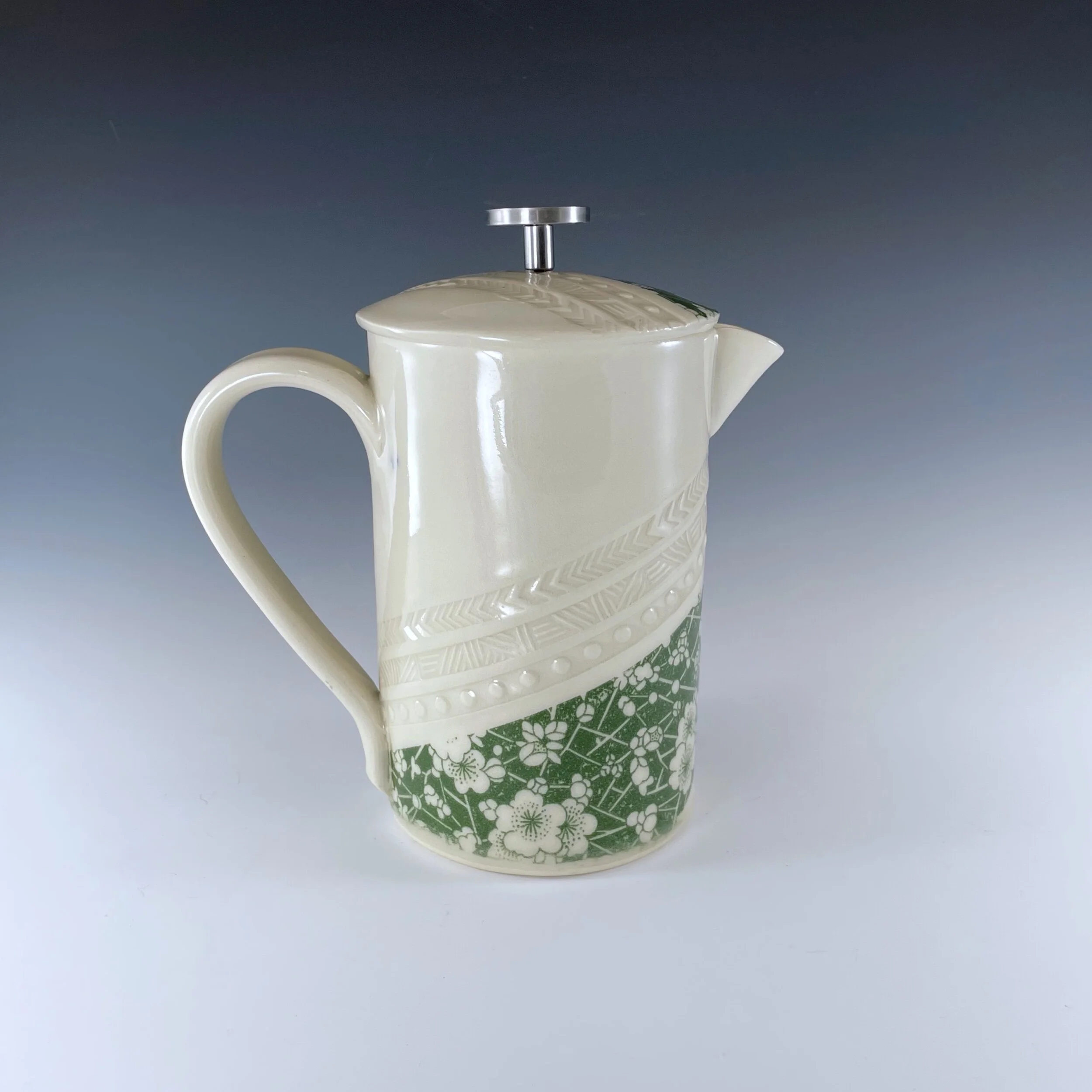 All my work is made from slabs and without a potter’s wheel. Look closely and you will be able to see the place where the seams come together. It is fired twice in an electric kiln, the second firing going up to 2200 degrees Fahrenheit. The clay and glazes are lead-free and food safe. All my work is made for use, not just to be displayed. It is durable, microwaveable, and dishwasher safe.